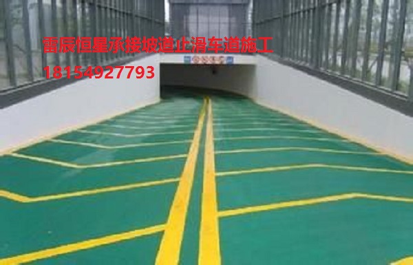1.防滑車道又稱無震動止滑車道、停車場防滑坡道、暴砂防滑地面、止滑型坡道、停車場防滑地坪漆等。專門用于各類停車場上、下坡道場所。防滑車道材料一種雙組份、反應硬化性材料,主要成分由是改性樹脂和C料組成,含有多 角性硬度極高的骨材,利用巨大比表面積,達到防滑效果!